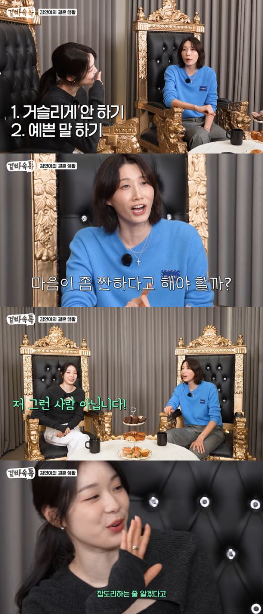 이에 대해 김연아는 "저 그런 사람 아니다. 누가 보면 엄청 잡도리 하는 줄 알겠다"면서도 "남편이 거슬리게 하는 스타일은 아니다. 남녀가 다르다 보니까 같이 생활하다 보면 여자로서 생기는 문제들을 말하는 거다. 저는 가끔 불만이 있는데 그는 불만이 없더라. 그걸 맞춰가는 건데 저렇게 얘기를 했더라"며 억울해했다.