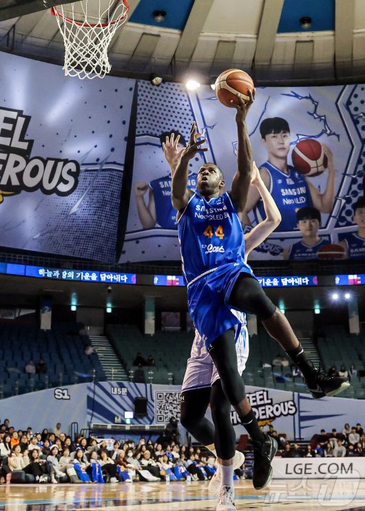 (서울=뉴스1) 김진환 기자 = 22일 오후 서울 송파구 잠실 잠실실내체육관에서 열린 2025-2026 LG전자 프로농구 정규리그 서울 삼성 썬더스와 대구 한국가스공사의 경기, 3쿼터 삼성 니콜슨이 골밑 돌파 후 레이업 슛을 하고 있다. 2026.1.22/뉴스1