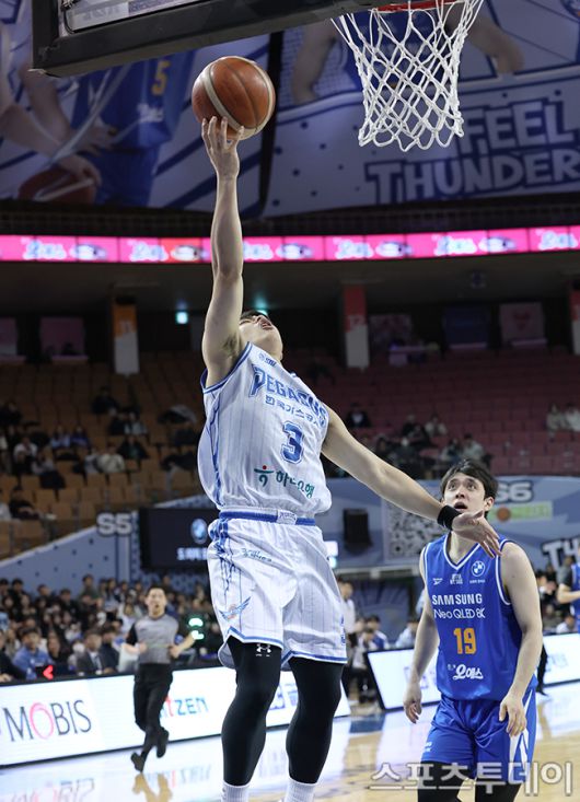 [스포츠투데이 권광일 기자] 2025-2026 LG전자 프로농구 서울삼성와 대구한국가스공사의 경기가 22일 서울 잠실실내체육관에서 열렸다. 가스공사 정성우가 골밑 레이업슛을 하고 있다. 2026.01.22. [스포츠투데이 권광일 기자 sports@stoo.com]