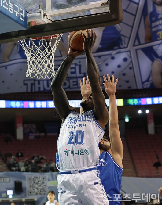 [스포츠투데이 권광일 기자] 2025-2026 LG전자 프로농구 서울삼성와 대구한국가스공사의 경기가 22일 서울 잠실실내체육관에서 열렸다. 가스공사 라건아가 골밑에서 슛을 하고 있다. 2026.01.22. [스포츠투데이 권광일 기자 sports@stoo.com]