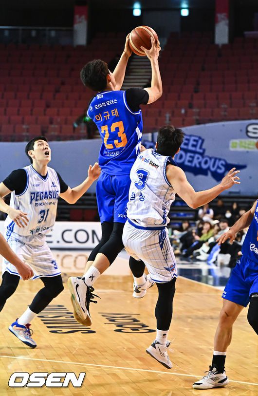4쿼터 삼성 이규태가 한국가스공사 패스를 가로채고 있다. 2026.01.22 / soul1014@osen.co.kr