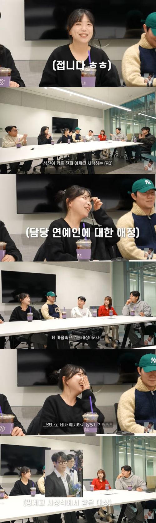 김종국은 "석진이 형을 진짜 아끼고 사랑한다. 완수가 착하다"며 "석진이 형이 이번에 또 (연예대상에서) 상을 못 받았는데 마음이 어땠냐?"고 물었다. 손수완 PD는 "내 마음속으로는 대상이라서"라고 답했고, 김종국은 "예전에는 석진이 형이 상을 못 받았을 때 눈물을 흘렸었다는 얘기가 있다. 네가 얘기하지 않았니?"라고 질문했다.