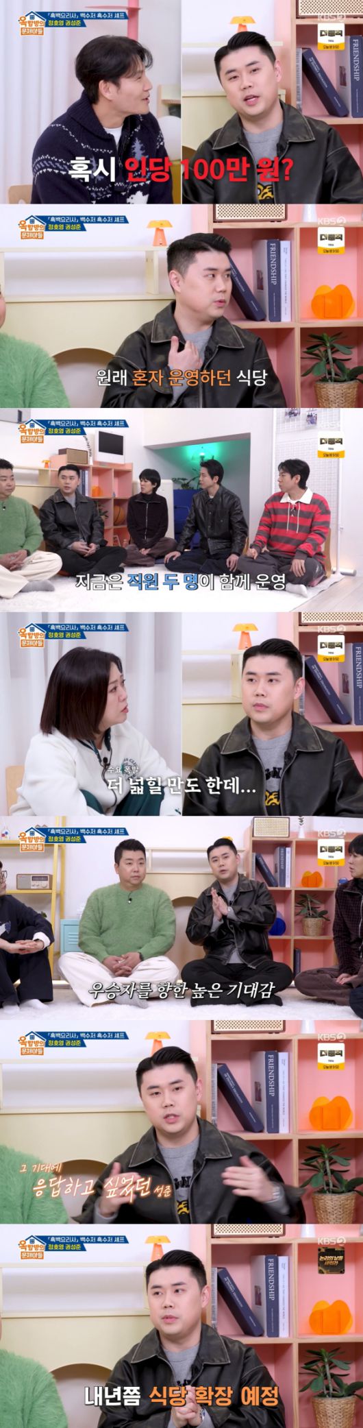 김숙은 "다들 가고 싶어 하는데 왜 식당을 넓히지 않냐"고 물었다. 권성준은 "'흑백요리사' 시즌1이 엄청 잘 됐다. 거기서 우승을 했기 때문에 기대감이 있다 보니까 그걸 충족시켜 주고 싶어서 늘려서 돈을 벌기보다는 오신 분들을 만족시키는 게 우선 같다"고 밝혔다.
