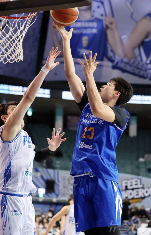 (서울=뉴스1) 김진환 기자 = 22일 오후 서울 송파구 잠실 잠실실내체육관에서 열린 2025-2026 LG전자 프로농구 정규리그 서울 삼성 썬더스와 대구 한국가스공사의 경기, 4쿼터 삼성 이규태가 골밑슛을 하고 있다. 2026.1.22/뉴스1kwangshinQQ@news1.krCopyright ⓒ 뉴스1. All rights reserved. 무단 전재 및 재배포, AI학습 이용 금지.
