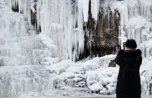 연일 계속되는 맹추위로 인해 22일 오전 서울 서대문구 홍제천 인공폭포가 얼음으로 뒤덮여 있다. 이상섭 기자 |