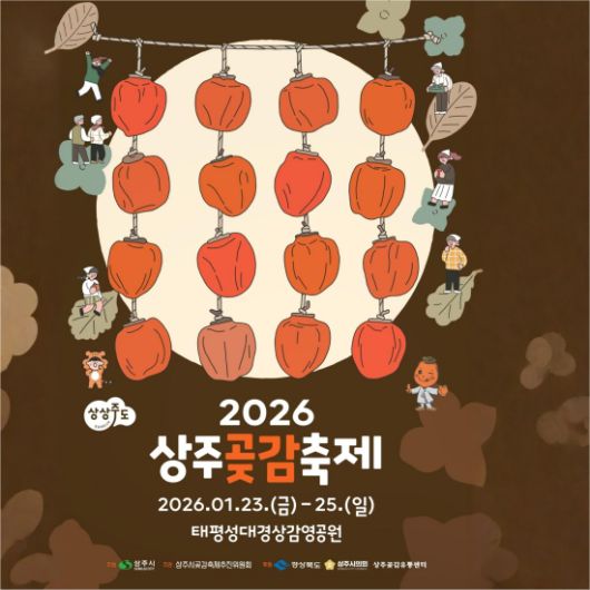 '2026 상주곶감축제’는 1월 23일부터 25일까지 사흘간 상주시 태평성대 경상감영공원에서 열린다.