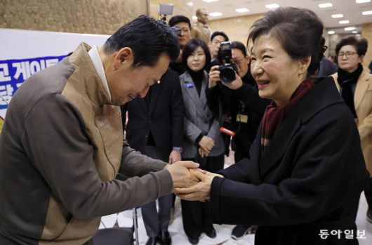 박근혜 전 대통령이 22일 서울 여의도 국회 로텐더홀에서 통일교·공천헌금 ‘쌍특검’ 수용을 요구하며 8일째 단식 중인 국민의힘 장동혁 대표를 찾아 대화하고 있다. 장승윤 기자 tomato99@donga.com |