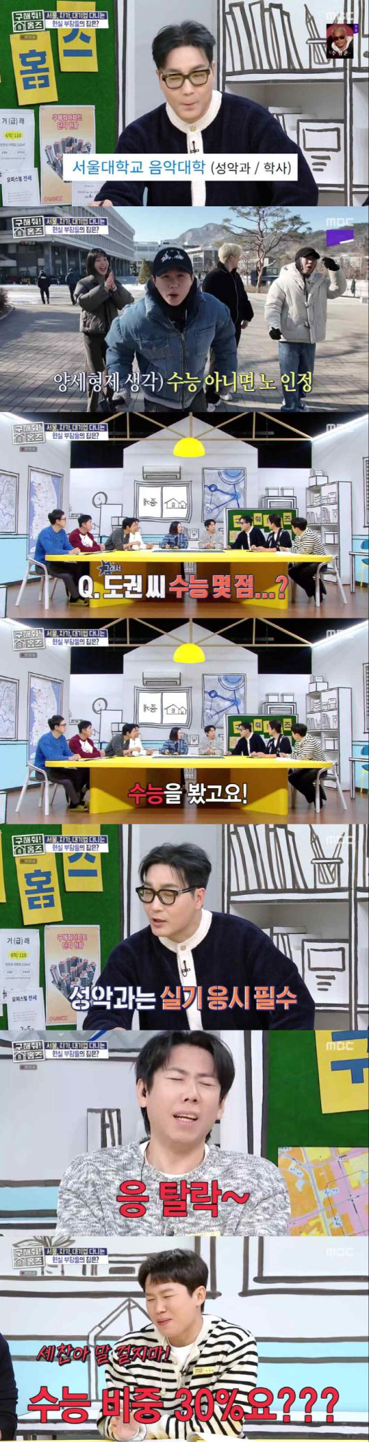 그럼에도 집요한 질문이 이어졌고, 결국 하도권은 "수능은 봤다. 하지만 성악과는 실기가 중요하다. 수능 30%, 실기 70%"라고 설명했다. 이에 양세찬은 "여기도 가짜다"라고 농담했고, 양세형 역시 "세찬아, 말 걸지 말자"고 너스레를 떨어 웃음을 안겼다.