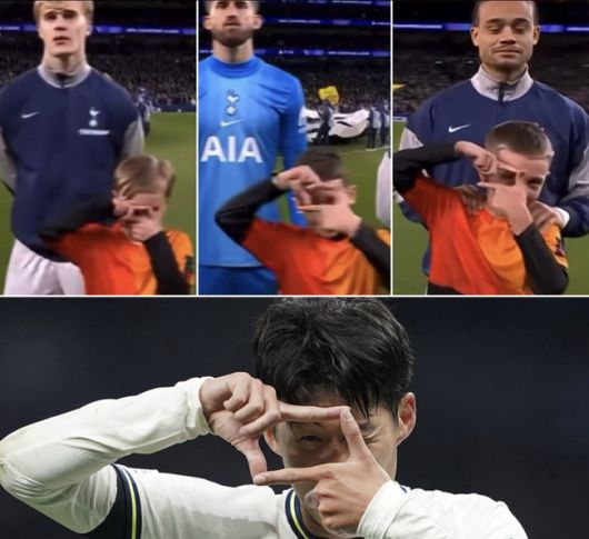 토트넘 홋스퍼 에스코트 키즈들이 단체로 '손흥민 찰칵 세리머니'를 펼쳐 화제다.