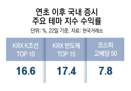 코스피가 22일 역대 처음으로 장중 5,000을 돌파하면서 그간 증시를 견인한 반도체, 인공지능(AI), 로봇, 조선 분야 종목 투자가 주목받고 있다. 지금이라도 이 분야의 우량주와 배당주를 중심으로 투자하면 연 2%대인 시중은행 정기예금 금리보다 높은 이익을 거둘 수 있다는 기대가 있다.