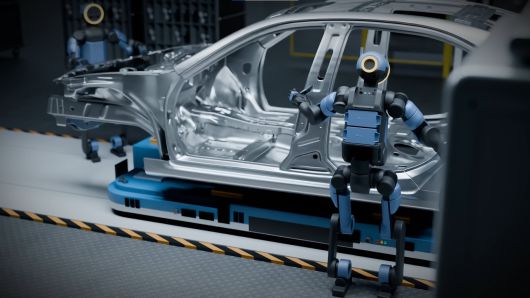 휴머노이드 ‘아틀라스’가 자동차 공장에서 작업하는 모습을 그린 가상 이미지. 아틀라스는 현대차그룹의 로봇 자회사인 미국 보스턴다이나믹스가 개발한 인간형 로봇으로 사람과 유사한 동작을 수행하며 스스로 배터리를 교체하는 시간을 제외하고는 사실상 24시간 작업이 가능하다./현대자동차 |