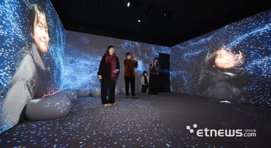 KT의 통신기술의 역사를 체험할 수 있는 'KT 온마루'가 이색 체험공간으로 인기를 끌고 있다. 통신사료를 활용해 체험형으로 즐길 수 있는 '시간의 회랑', 몰입형 미디어 아트를 감상할 수 있는 '빛의 중정', 주기적으로 새롭게 변화하는 팝업 공간 '이음의 여정'으로 구성된 온마루는 월요일부터 토요일까지 상시 무료 개방되며 사전 예약을 통해 도슨트 투어도 가능하다. 방문객이 빛의 중정을 감상하고 있다.