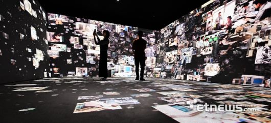 KT의 통신기술의 역사를 체험할 수 있는 'KT 온마루'가 이색 체험공간으로 인기를 끌고 있다. 통신사료를 활용해 체험형으로 즐길 수 있는 '시간의 회랑', 몰입형 미디어 아트를 감상할 수 있는 '빛의 중정', 주기적으로 새롭게 변화하는 팝업 공간 '이음의 여정'으로 구성된 온마루는 월요일부터 토요일까지 상시 무료 개방되며 사전 예약을 통해 도슨트 투어도 가능하다. 방문객이 빛의 중정을 감상하고 있다.