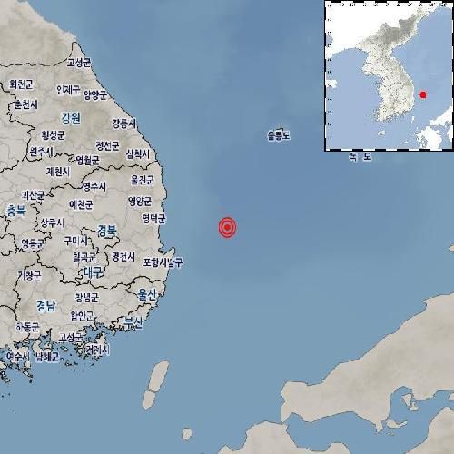 (서울=연합뉴스) 23일 오전 1시 48분 21초 경북 영덕군 동쪽 77km 해역에서 규모 2.0의 지진이 발생했다고 기상청이 밝혔다.