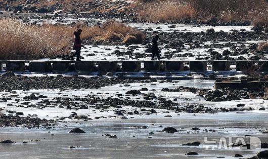 [대구=뉴시스] 이무열 기자 = 연일 강추위가 이어지고 있는 22일 대구 수성구 용두교 일대 신천이 얼어붙어 있다. 2026.01.22. lmy@newsis.com |