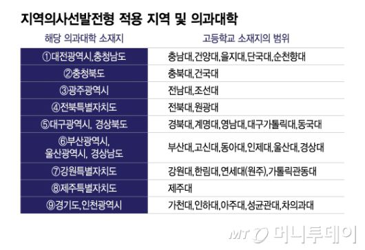 지역의사선발전형 적용 지역 및 의과대학/그래픽=이지혜 |