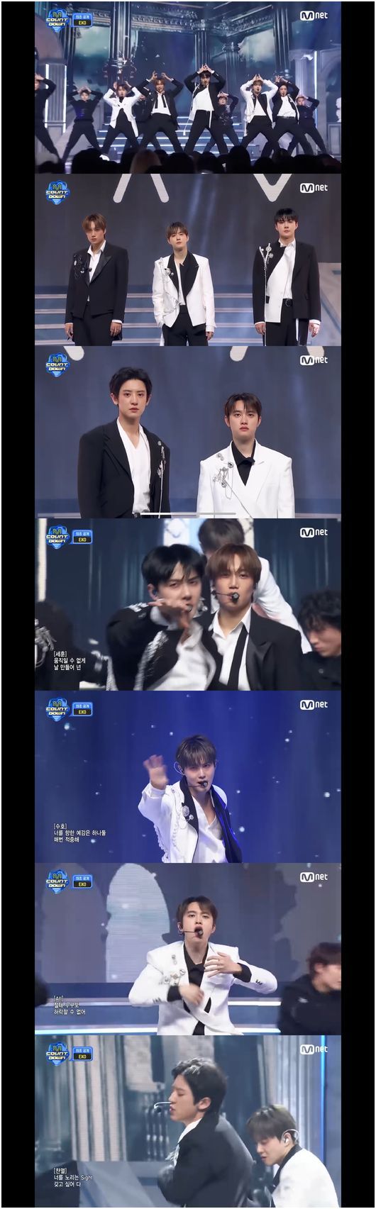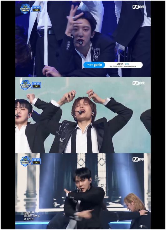 지난 22일 엑소는 Mnet ‘엠카운트다운’을 통해 정규 8집 ‘리버스’ 타이틀곡 ‘크라운’ 무대를 쇼케이스 이후 최초로 선보였다. 파워풀한 안무와 꽉 찬 트랩 비트 속 엑소는 여전히 웅장하게 심장을 울리는 여전한 엑소다운 모습을 보였다. 무대, 노래, 의상뿐 아니라 엑소 스스로 외모를 데뷔 후 전성기 내내 뽐냈던 그대로 갖고 와 ‘팬들의 기를 살리는 건 아이돌의 얼굴과 실력이다’라는 말을 입증시켰다.