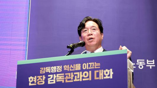 김영훈 고용노동부 장관이 14일 오전 서울 서초구 양재동 엘타워에서 열린 ‘현장 감독관과의 대화’에서 발언을 하고 있다. 2026.1.14 고용노동부 제공 |