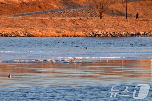 경북 포항의 아침 기온이 올 겨울들어 가장 낮은 -9도, 체김온도는 -11도까지 내려간 22일 오전 남구 연일읍 형산강 곳곳이 얼었다. ⓒ News1 최창호 기자 |