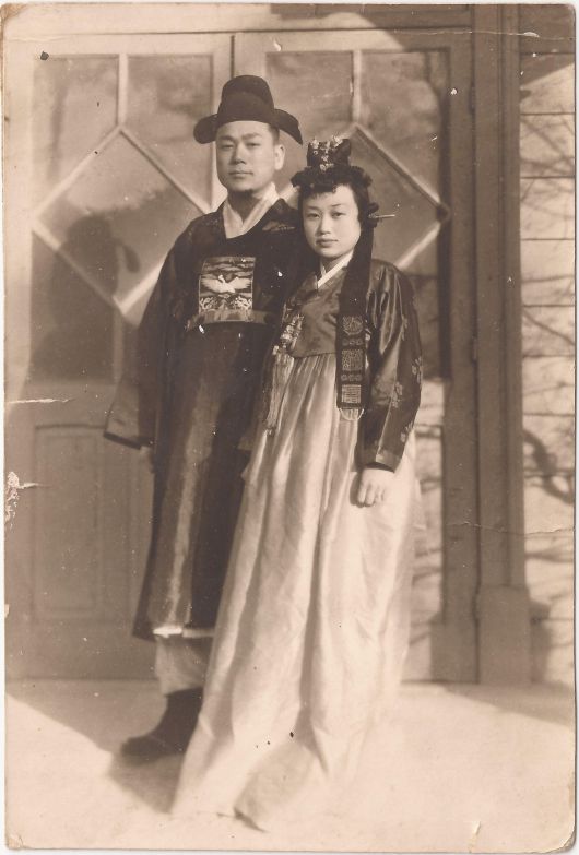 박래현과 김기창의 결혼사진, 1946, 개인소장. 박래현이 앞에 서서 당당한 포즈를 취한 것이 인상적이다. |