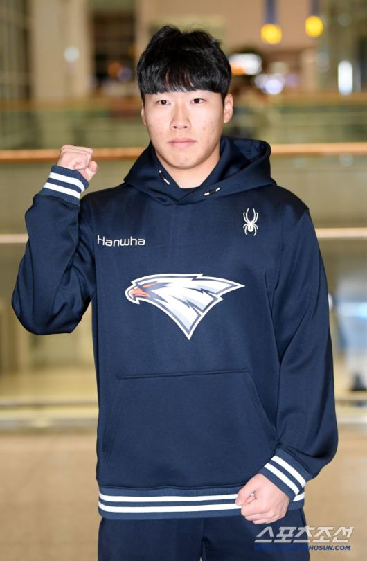 한화 이글스 선수단이 23일 인천국제공항을 통해 스프링캠프가 열리는 호주로 출국했다. 최유빈이 포즈를 취하고 있다. 인천공항=박재만 기자 pjm@sportschosun.com/2026.01.23/