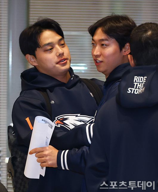 [인천공항=스포츠투데이 팽현준 기자] 한화 이글스 문동주, 엄상백이 2026 시즌 준비 스프링캠프를 위해 23일 인천국제공항에서 출국을 준비하고 있다. 2026.01.23. [스포츠투데이 팽현준 기자 sports@stoo.com]