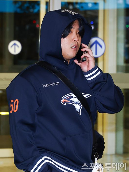 [ST포토] 한화 강백호, '새벽에도 열심히 통화중'
