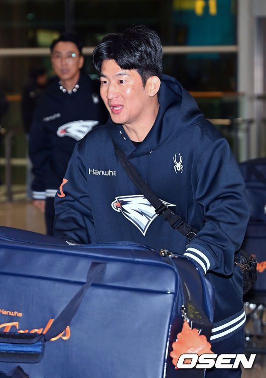 [OSEN=인천공항, 민경훈 기자] 프로야구 한화 이글스가 2026 시즌을 준비하기 위해 23일 오전 인천공항을 통해 호주 멜버른으로 1차 스프링캠프를 떠났다. 김경문 감독이 이끄는 한화 선수단은 코치진 17명, 선수 46명을 합해 63명으로 1차 스프링캠프 명단을 꾸렸다. 한화 최재훈이 출국길에 오르고 있다. 2026.01.23 / rumi@osen.co.kr