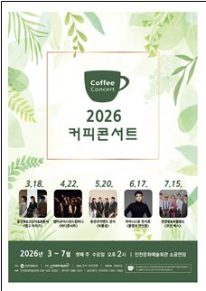 (인천=국제뉴스) 이병훈 기자 = 인천문화예술회관이 간판 브랜드 공연 〈커피콘서트>의 2026년 상반기 출연진을 공개한다.