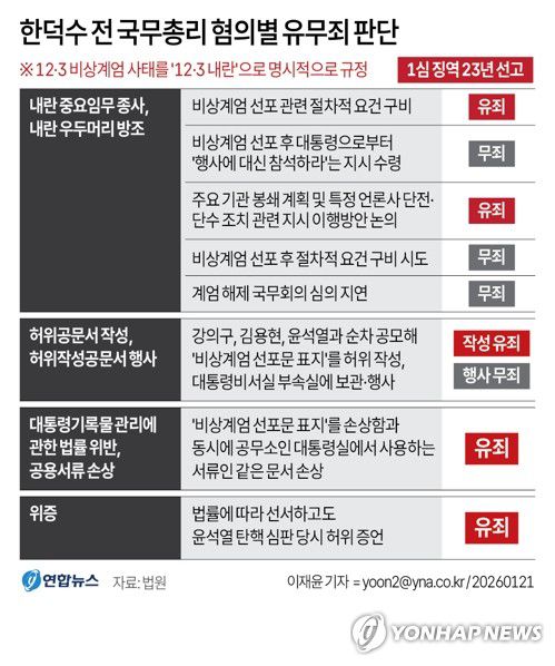 [그래픽] 한덕수 전 국무총리 혐의별 유무죄 판단 |