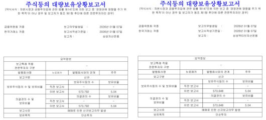운용업계 관계자는 “운용사 공시 상당수는 펀드·ETF 운용 과정에서 5%를 넘기며 발생하는데, 위탁·재위탁 구조가 얽히면 같은 건이 여러 주체 명의로 공시돼 착시가 생길 수 있다”며 “업계 내부자가 아니면 공시만으로는 자금 성격을 판별하기 어려운 만큼, 위탁 운용 여부와 변동 사유(ETF 설정 등)를 투자자가 쉽게 식별할 수 있도록 표기 방식을 개선해야 한다"고 말했다.
