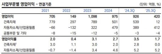 지난 2023년 건축용 유리 사업을 엘엑스글라스에 양도(451억원)했으며 2024년에는 무역 법인을 청산하는 등 수익성이 낮은 해외 거점을 정리하고 있다. 수익성 약화 국면에서도 자본적지출(CAPEX)을 통제하고 현금흐름을 부채 상환에 집중했다.