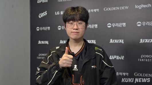 최우제는 이날 1세트 나르, 3세트 그웬을 잡고 팀 승리에 기여했다. 라인전부터 한타 때까지 자신의 역할을 다했다. 경기 후 쿠키뉴스와 만난 최우제는 “연패 중인 상황이기도 했고, 지게 되면 많이 힘들어졌다. 이겨서 다행”이라 승리 소감을 전했다.