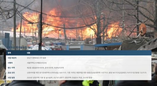 [서울=뉴스핌] 조수민 기자 = '강남구 마지막 판자촌'으로 불리는 개포동 구룡마을에서 최근 발생한 대형 화재 이후, 재개발 사업을 위한 거주자 이주 문제가 다시 불거지고 있다. 서울주택도시개발공사(SH)는 이주민을 위한 주택을 마련하고 이주를 독려하고 있지만, 일부 거주자들은 보상 문제를 이유로 이주를 거부하고 있다.