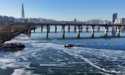 지난 22일 서울 한강 광나루한강공원 선착장 인근 강물이 얼어있다./사진=뉴스1 |