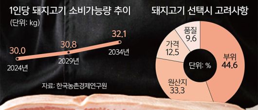 삼겹살의 지방 기준도 강화한다. ‘1+’ 등급의 삼겹살 지방 기준은 기존에 22∼42%였지만, 25∼40%로 조정된다. 살코기가 너무 많거나, 비계가 너무 많은 경우 1+ 등급을 받기 어려워지는 것이다. 이와 함께 품종, 사양기술, 육질 등에 따른 ‘돼지 생산관리 인증제’를 적용해 생산단계부터 품질관리를 강화한다. 돼지고기 거래가격의 투명성을 높이기 위해 도매시장은 2030년까지 12개소 이상으로 늘리고 경매물량도 확대한다.