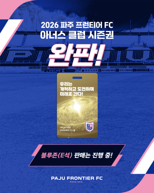 파주는 21일 “지난 20일 출시한 프리미엄 시즌권 ‘프런티어 아너스 클럽’이 판매 개시 단 하루 만에 한정 수량 11매가 전량 완판됐다”고 밝혔다.