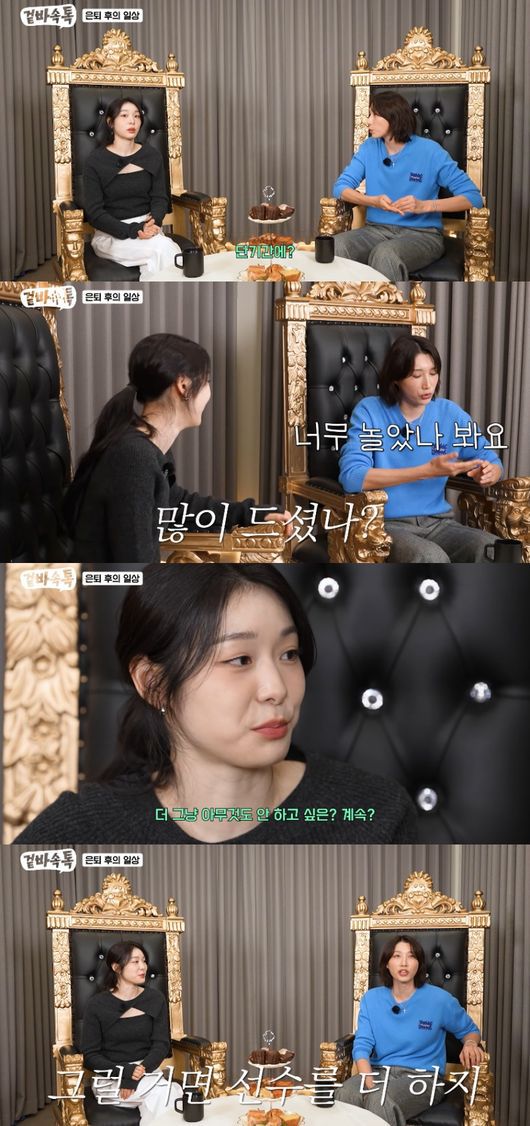 단기간에 악화된 건강에 김연아는 “많이 노신 거냐”라고 했고, 김연경은 “그래서 요즘에 관리를 좀 하고 있다. 저는 운동을 되게 꾸준히 한다. 찌뿌둥한 느낌이 들면 한다”라고 말했다.