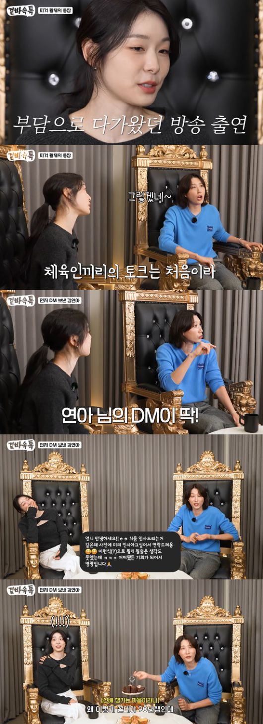 또한 김연경은 "나한테 DM을 했다. 거기 잘 안 들어가는데 딱 와 있더라. 처음 보내는 거 치고는 친근감 있게 하더라. 이모티콘도 있다"고 김연아가 보낸 DM을 자랑했다.