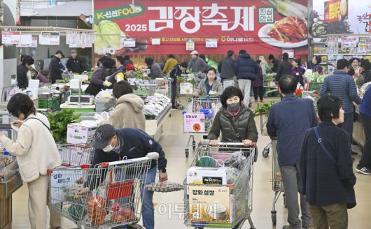 서울 시내의 한 대형마트에서 시민들이 장을 보고 있다. 조현호 기자 hyunho@ |