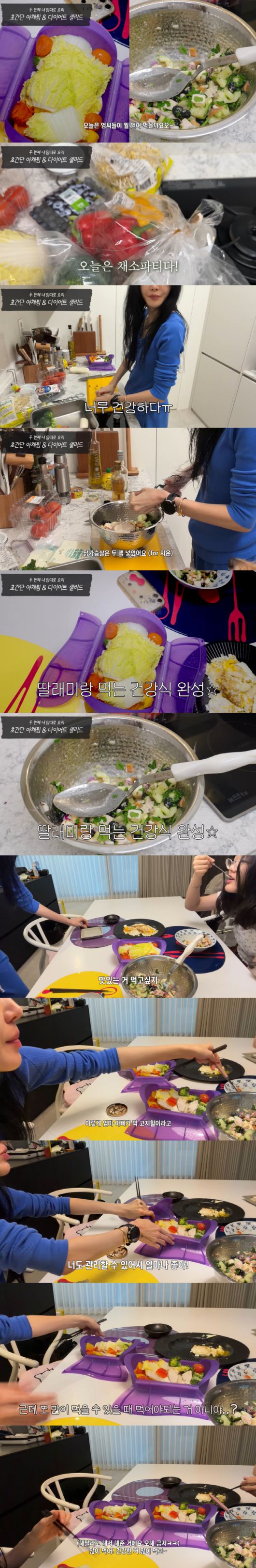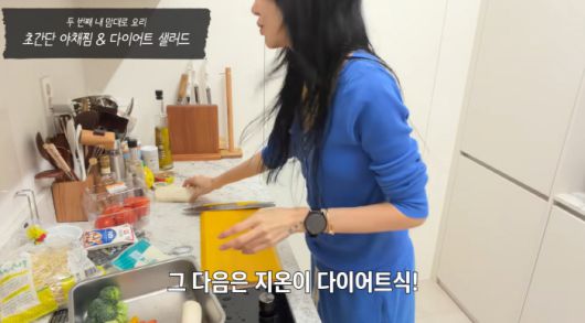 영상 속 윤혜진은 가족들 식사를 위해 초간단 야채찜과 다이어트 샐러드를 준비했다.