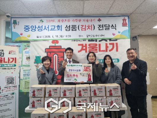 중앙성서교회는 매년 지역사회를 위한 나눔을 꾸준히 실천하고 있으며, 올해도 새해를 맞아 소외된 이웃에게 도움을 전하고자 성품을 마련했다. 기부받은 김치는 관내 취약계층에 전달 예정이다.