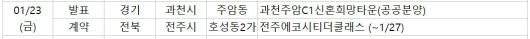 부동산 정보업체 부동산R114에 따르면 23일 오늘은 경기 과천시 '과천주암C1신혼희망타운(공공분양)' 단지의 당첨자 발표가 진행된다.