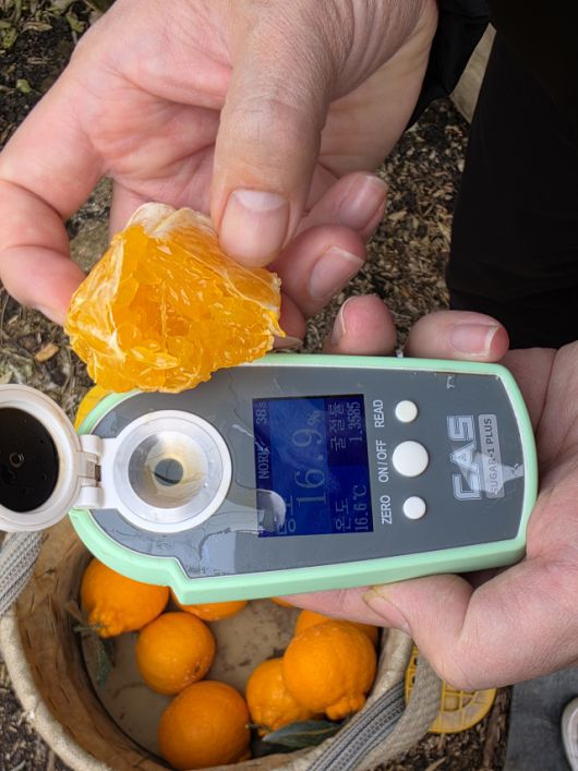 이번 설 명절을 맞아 롯데백화점의 써니트 한라봉 지정농가로 선정된 ‘제주 김기동 농가’는 3대에 걸쳐 40년 이상 고품질의 만감류를 재배해온 곳이다. 김씨는 “100명의 제주도 사람이 농사를 지으면 100가지 방법이 나온다”며 “비료, 묘목 가지치기, 손질 방식, 제초 방법 등에 따라 과육의 질감과 크기와 당·산도가 결정된다”며 ‘영업 비밀’을 귀띔했다.