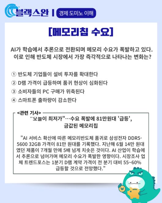 ▶ 기사 바로가기: “오늘이 최저가”···수요 폭발에 81만원대 ‘급등’, 금값된 메모리칩