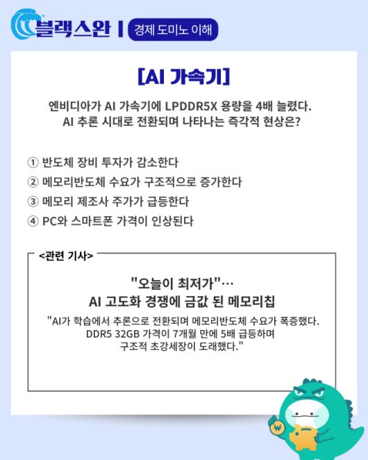 ▶ 기사 바로가기: “오늘이 최저가”···AI 고도화 경쟁에 금값 된 메모리칩