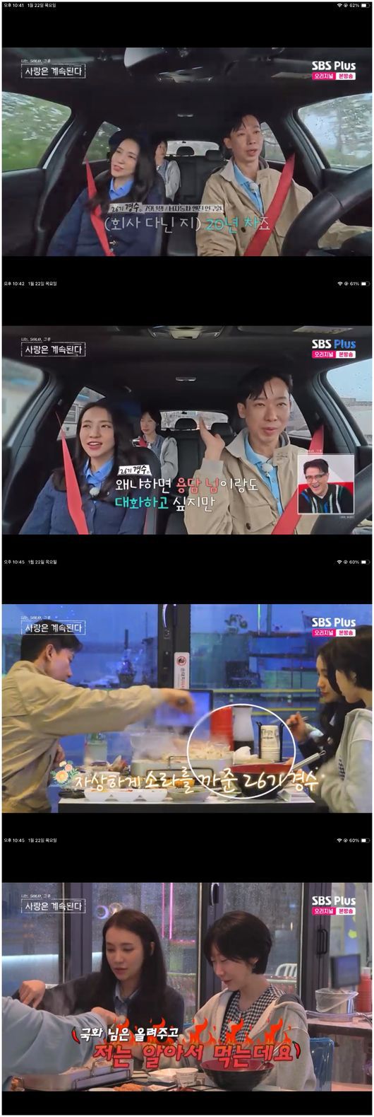 [OSEN=오세진 기자] ‘나는 SOLO, 그 후 사랑은 계속된다’ 26기 경수와 국화의 애정 행각에 윤보미와 경리가 납득할 수 없는 얼굴이 되었다.