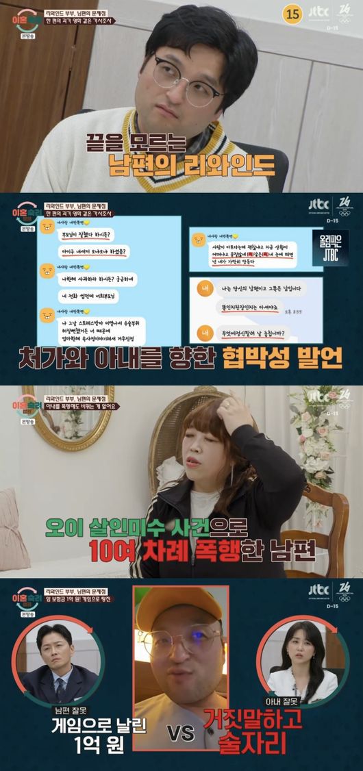 22일 방송된 JTBC ‘이혼숙려캠프’(이하 ‘이숙캠’)에서는 지겹도록 같은 말을 반복하는 ‘리와인드 부부’의 남은 이야기와 솔루션 과정이 공개됐다.