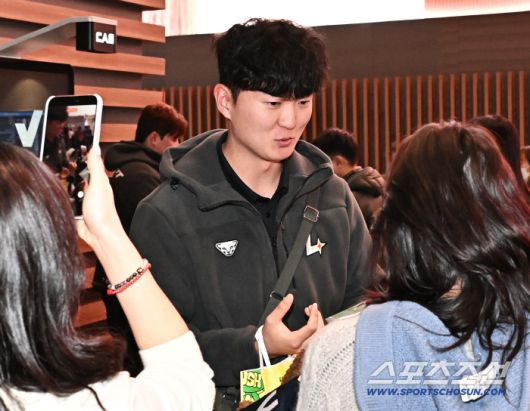23일 SSG 랜더스 선수단이 인천공항 제2터미널을 통해 전지훈련을 위해 출국했다. 출국에 앞서 팬들에게 사인을 해주고 있는 SSG 조요한. 인천공항=송정헌 기자songs@sportschosun.com/2026.01.23/ |