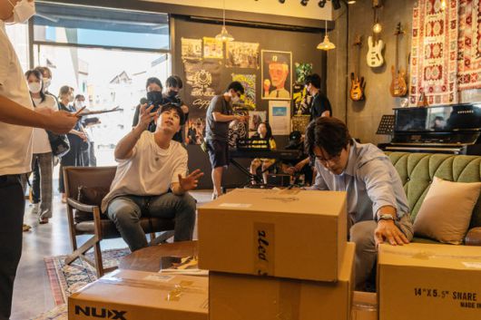 이어 카메라 모니터를 바라보며 장면을 점검하는 권상우와 박지환 그리고 표지훈, 최원섭 감독의 모습도 담겨 있어 디테일한 호흡과 타이밍을 꼼꼼히 맞추는 과정 속에서도 웃음이 끊이지 않는 현장은 영화 속 유쾌한 에너지가 어디에서 비롯됐는지를 짐작하게 한다. 뿐만 아니라 앰뷸런스 록밴드의 콘셉트가 돋보이는 스틸은 영화 속 음악과 코미디가 결합된 장면의 탄생 비화를 엿보게 한다.